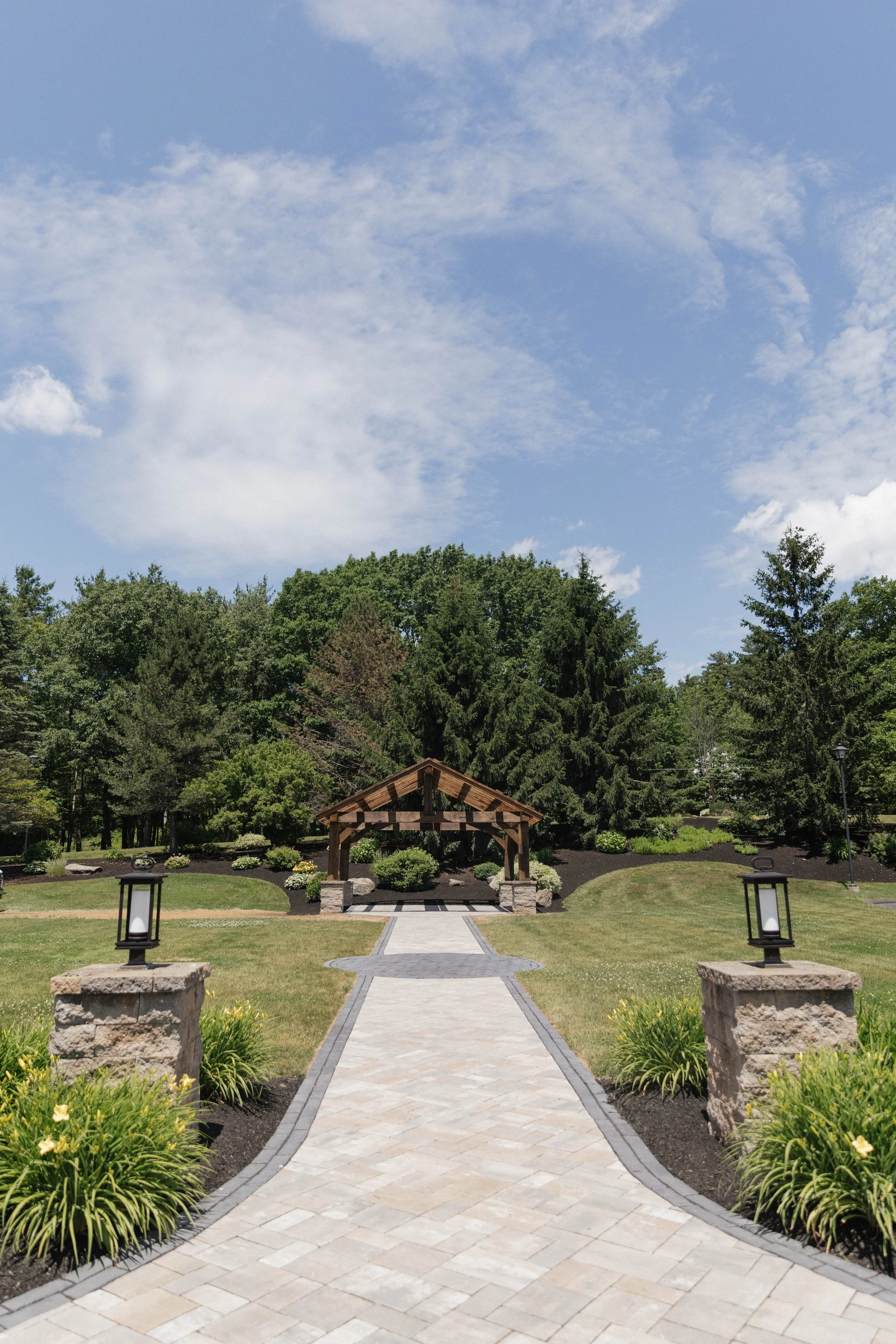 Our ceremony spaces offer both a serene outdoor setting and an elegant indoor ballroom option for exchanging vows. Outdoors, manicured gardens, winding stone pathways, and a charming wooden arbor create a timeless backdrop where natural beauty and soft landscaping frame your most meaningful moments. Inside, our refined ballroom provides a classic, climate-controlled setting with graceful architectural details and a warm, romantic ambiance. Whether you envision saying “I do” beneath the open sky or within an elegant indoor space, each setting is thoughtfully designed to feel intimate, picturesque, and unforgettable.